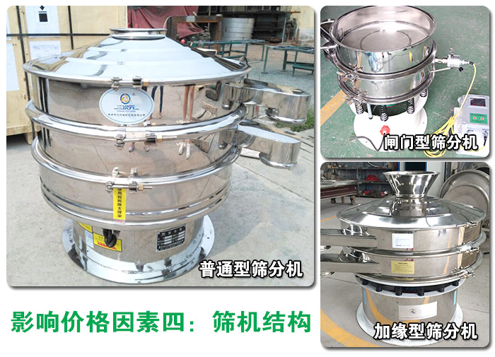 煙草振動篩分機除標(biāo)準(zhǔn)結(jié)構(gòu)外還可根據(jù)現(xiàn)場環(huán)境的使用需求特殊定制(如底座加高、進料口加緣、出料口加閥門等等),隨之價格也會有對應(yīng)的提升,每個型號之間相差600-1500元不等。