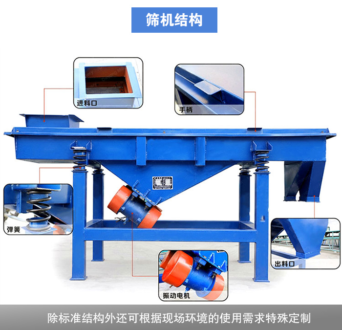 松香分級直線振動(dòng)篩除標(biāo)準(zhǔn)結(jié)構(gòu)外還可根據(jù)現(xiàn)場環(huán)境的使用需求特殊定制(如底座加高、進(jìn)料口加緣、出料口加閥門等等),隨之價(jià)格也會(huì)有對應(yīng)的提升,每個(gè)型號之間相差600-1500元不等。