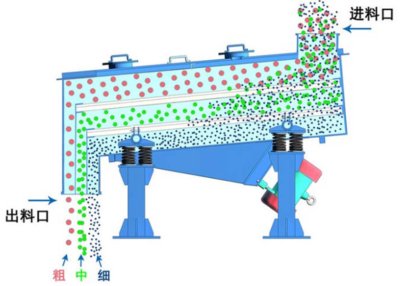 直線振動(dòng)篩:結(jié)構(gòu)以篩箱為主體,內(nèi)置單層或多層篩網(wǎng)。其核心動(dòng)力來自兩臺(tái)同步反向旋轉(zhuǎn)的振動(dòng)電機(jī),產(chǎn)生直線激振力。設(shè)備通過減振彈簧支撐于底座,以隔離振動(dòng)。結(jié)構(gòu)堅(jiān)固,適合大產(chǎn)量連續(xù)作業(yè)。