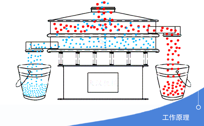 不銹鋼旋振篩分機(jī)采用直立式電機(jī)作激振源,當(dāng)篩機(jī)啟動(dòng)后,電機(jī)上、下兩端安裝的偏心重錘,將電機(jī)的旋轉(zhuǎn)運(yùn)動(dòng)轉(zhuǎn)變?yōu)樗?、垂直、傾斜的三次元運(yùn)動(dòng),再把這個(gè)運(yùn)動(dòng)傳遞給篩面。在此過(guò)程中,小于篩面孔徑的物料通過(guò)篩孔落到下層,成為篩下物,大于篩面孔徑的物料經(jīng)連續(xù)跳躍運(yùn)動(dòng)后從排料口排出,用戶通過(guò)調(diào)節(jié)上、下兩端重錘的相位角,可以改變物料在篩面上的運(yùn)動(dòng)軌跡,從而設(shè)計(jì)實(shí)現(xiàn)對(duì)物料的篩分。