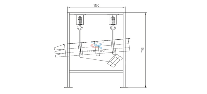 整個設備由篩箱、網(wǎng)架、篩網(wǎng)、2臺臥式振動篩電機、減震彈簧、進出料口、上蓋組成,除此之外還有高度可按需求定制的支架通過四個吊鉤把整個設備吊掛起來使其處于懸空狀態(tài)。