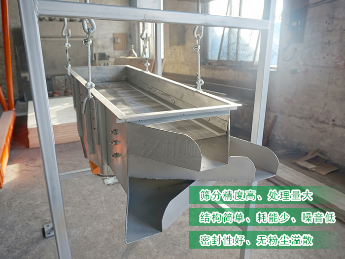吊掛式直線振動篩分機是大漢機械根據(jù)特殊客戶要求定制的可懸空的篩分設備,可節(jié)省篩分現(xiàn)場的空間使用,下面小編就為大家具體介紹下它: