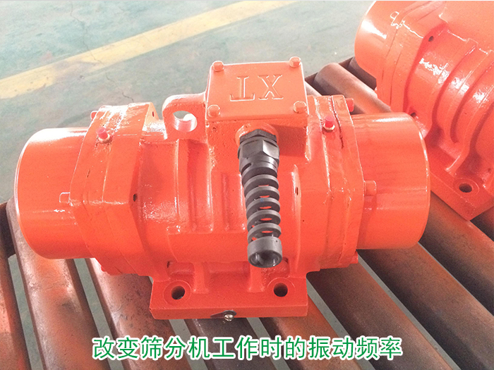 可改變篩分機(jī)工作時(shí)的振動(dòng)頻率與其自身固有的振動(dòng)頻率為不一致的頻率,可通過振動(dòng)電機(jī)改變篩分機(jī)的振動(dòng)頻率從而達(dá)到防止共振的目的。(可調(diào)節(jié)電機(jī)兩端的偏心塊夾角來改動(dòng)激振力的大小,夾角小,激振力變大,振幅變大;反之,夾角變大,激振力變小,振幅變?。?。